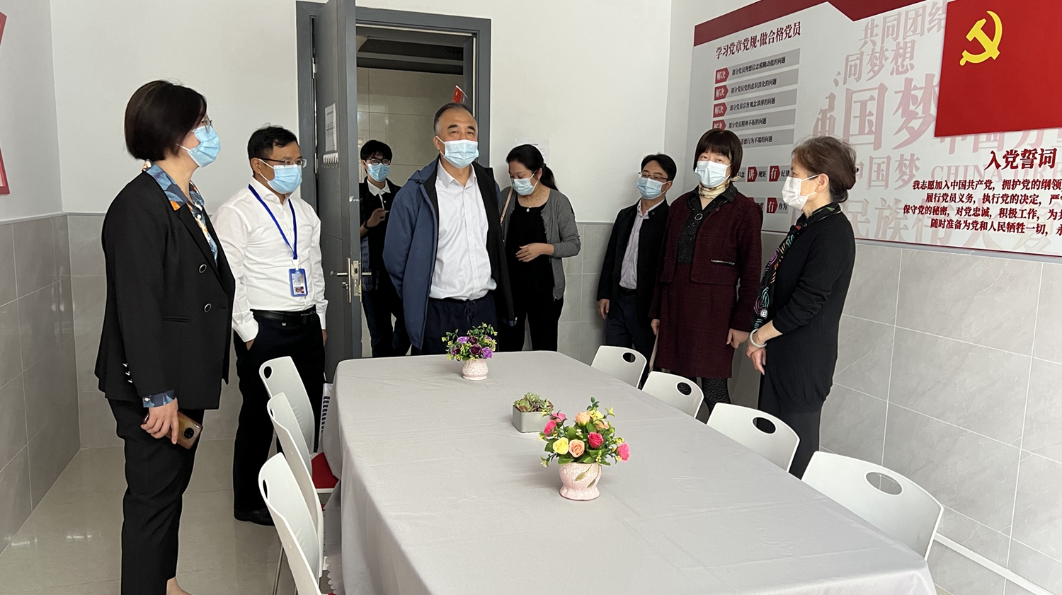 聂清副校长一行实地走访了文荟书院的六大育人空间,党建活动室、群团活动室、学业指导室、文化活动室、心灵辅导室、书院办公室。